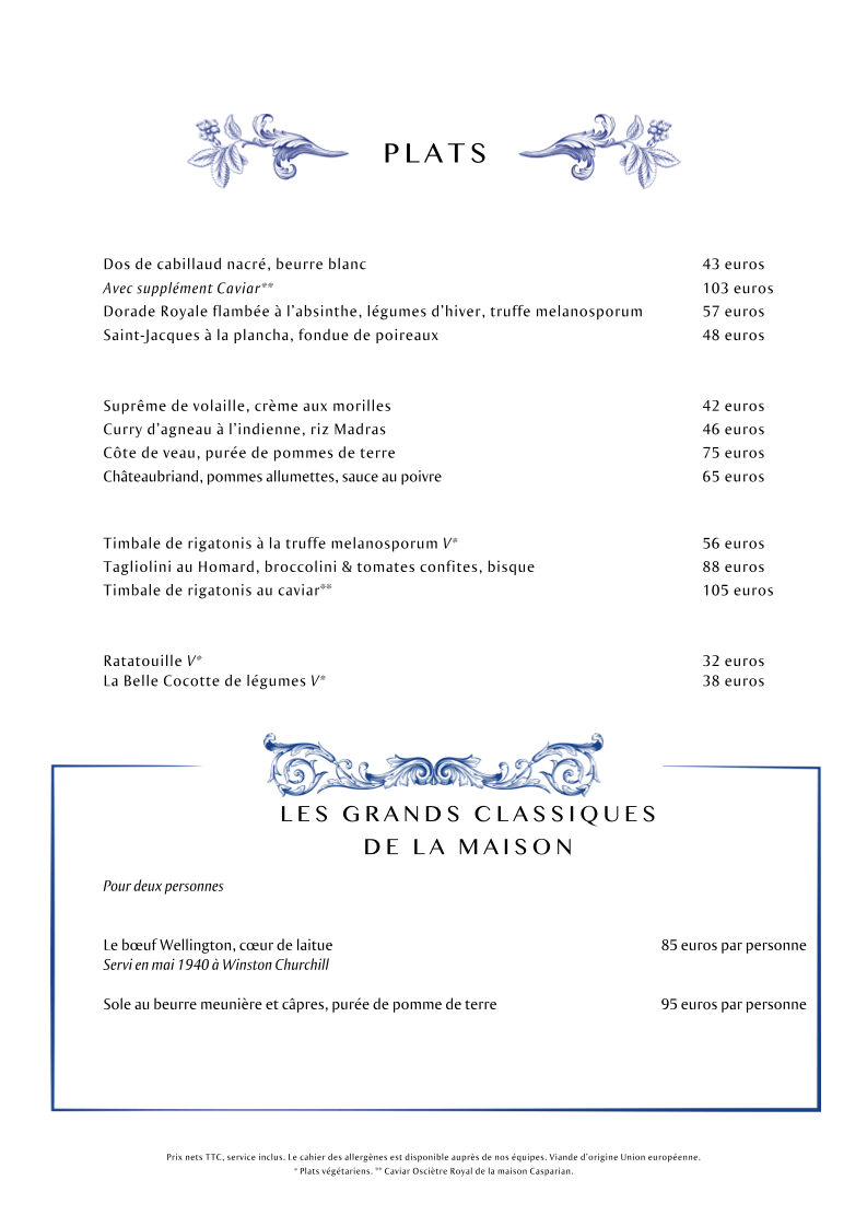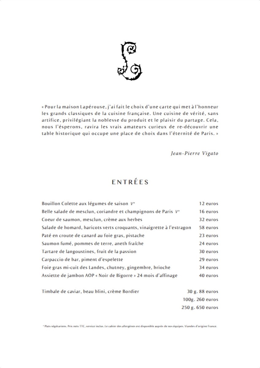 Lapérouse Menu