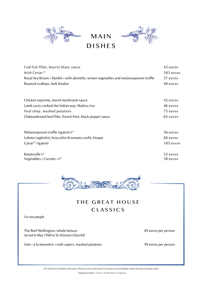 Guests can expect both rich and delicate flavors, from starters like escargots prepared with a basil cream to the elegant crusted duck filled with foie gras and pistachios. Seasonal touches like Melanosporum truffle rigatoni or the roasted scallops served with leek fondue provide moments of surprise and depth, complementing the warm, dimly-lit ambiance of the historic dining rooms.